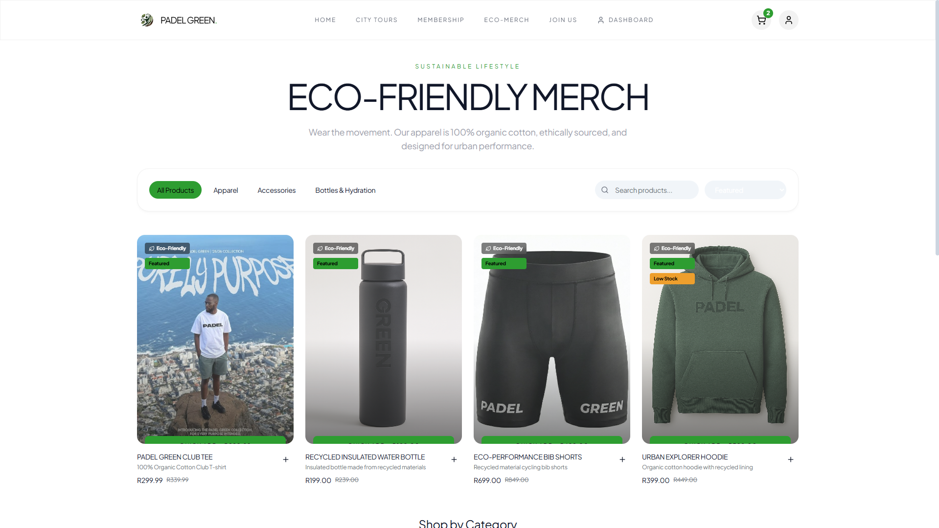 Eco-Friendly Merchandise Store: Online store featuring sustainable sportswear and accessories.